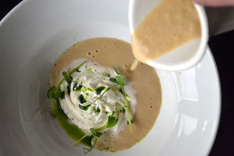 מרקון קרם בצלים,שמן ריחן וקציפת כמהין, פתח יופי את הארוחה. לצד גריסיני רוזמרין המוגש עם מטבל חציל מעושן ואיולי עשבי תיבול