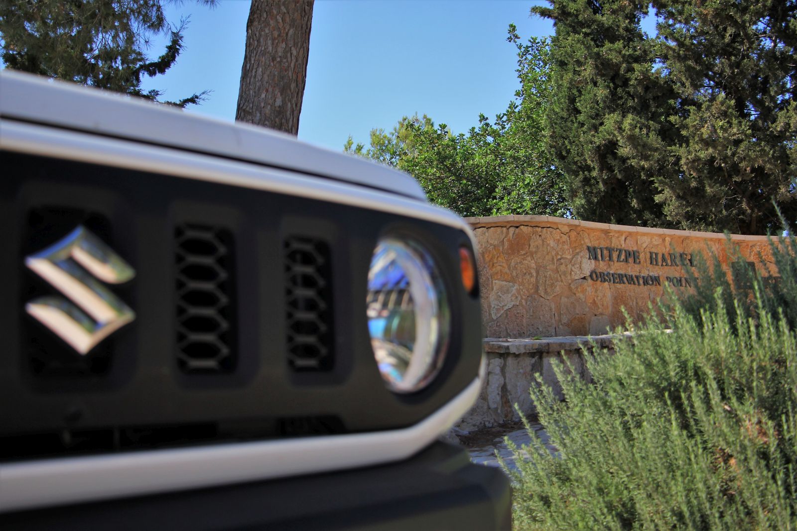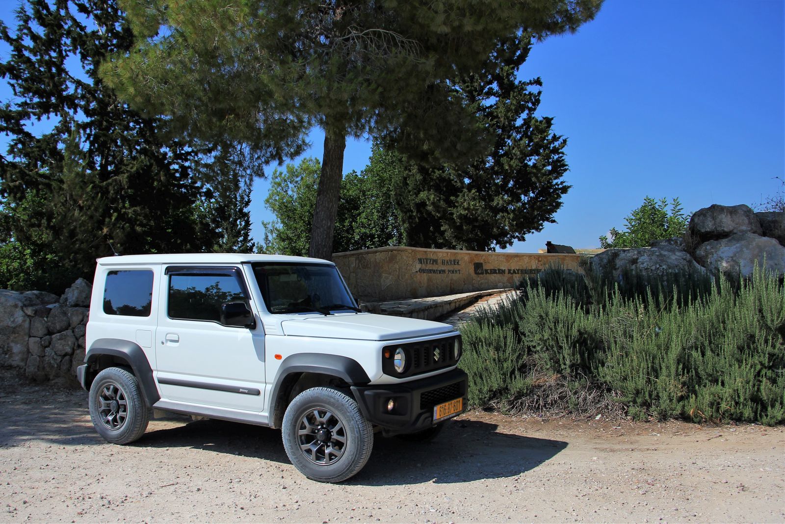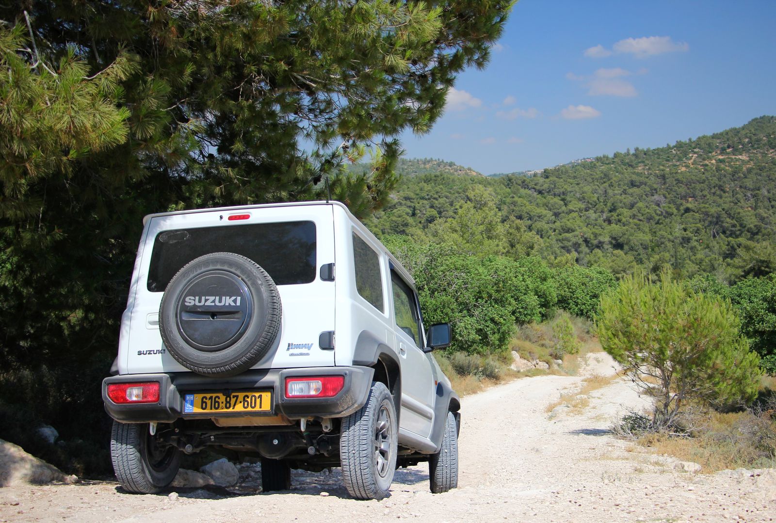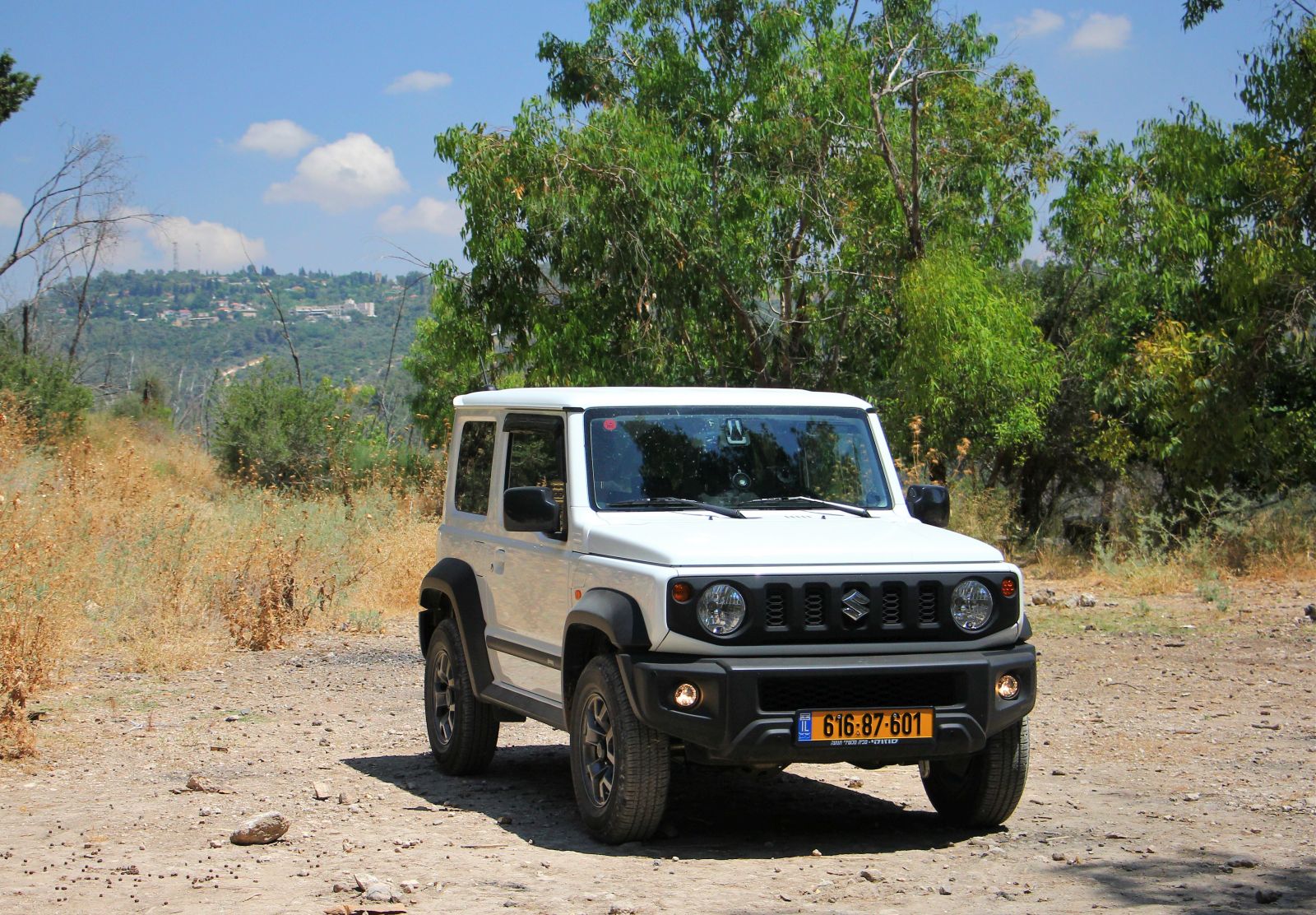 המשך בתאווי המעגלי החזיר אותנו אל השביל האדום ומשם המשכנו הלאה אל עבר מצפה הראל. הדרך המתפתלת כוללת מספר מעברים טכניים וקטעי טיפוס זרועי אבנים, עם חריצי קרקע בולטים שנוצרו בעקבות גשמי החורף. ב-48′ זה היה בהחלט אתגר, אבל סוזוקי ג’ימני לא התקשה לדלג מעל מכשולים אלו הקלילות ובעקביות, מעלה מאחוריו עננת אבק קיץ. כדאי מאד לא למהר, ליהנות מהדרך והנוף, וגם להיזהר ממטיילים רגליים שעוברים בדרך שהיא חלק מסימון שביל ישראל.  כשהגענו למצפה הראל עצרנו ליהנות מהצל ומהתצפית אל עבר העיר מודיעין, ואחרי שעה קלה חזרנו באותה הדרך בה הגענו.