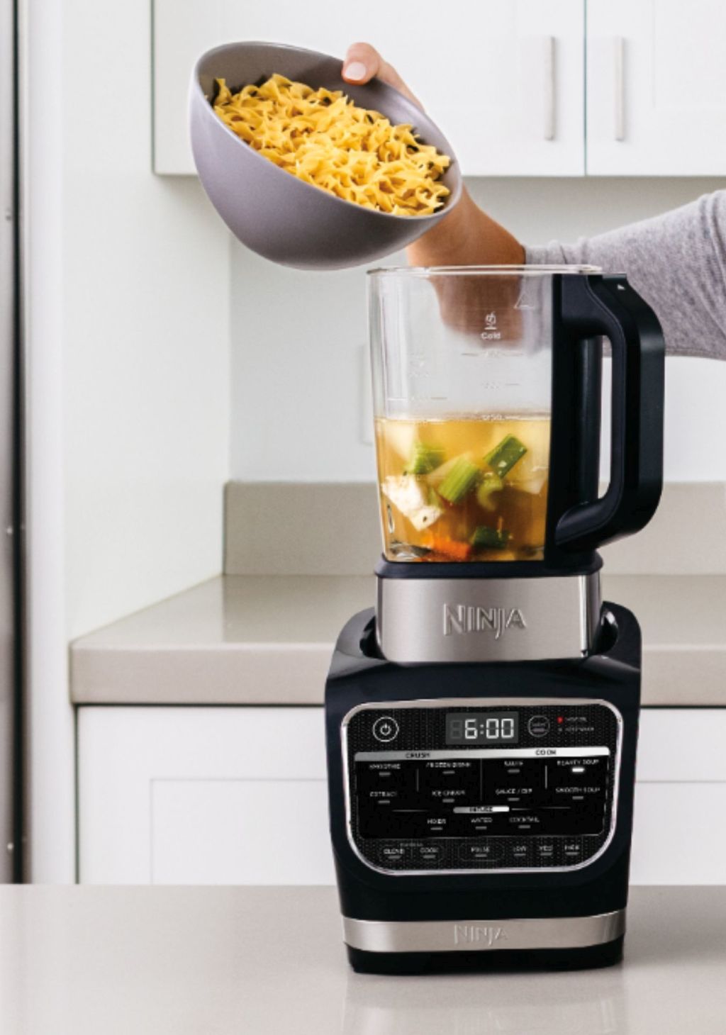 Foodi COLD&HOT BLENDER הבלנדר החדש של נינג’ה בעל עוצמה של כ- 1000W עם 12 תוכניות שף חכמות מעכשיו הוא גם יבשל לכם את האוכל במידה ותרצו. אידיאלי להכנת תבשילים, מרקים, שייקים, קוקטיילים והכל בנגיעת טאצ’ אחת. בלנדר מושלם המקצר את תהליך הכנות הבישול ועכשיו עם פונקציות רבות ומגוונות ובהן: