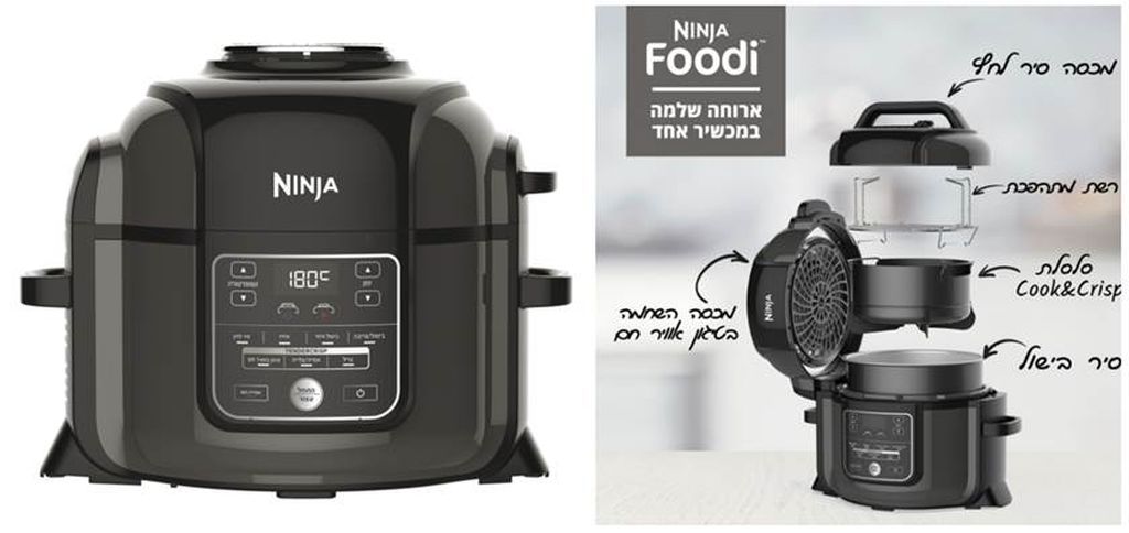 NINJA FOODI סיר נינג’ה פודי החדש מאפשר להכין ארוחה שלמה במכשיר אחד המשלב סיר לחץ עם 14 דרגות בטיחות מכניות וחשמליות, סיר טיגון באוויר חם החוסך 70% מזמן הבישול ומפחית 75% שומן מאפשר לבשל במהירות את המזון תוך שמירה על עסיסיות ובגימור מושלם וקריספי באמצעות 7 תוכניות בישול שונות: