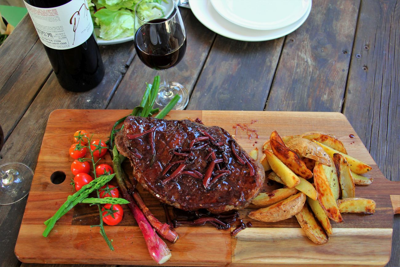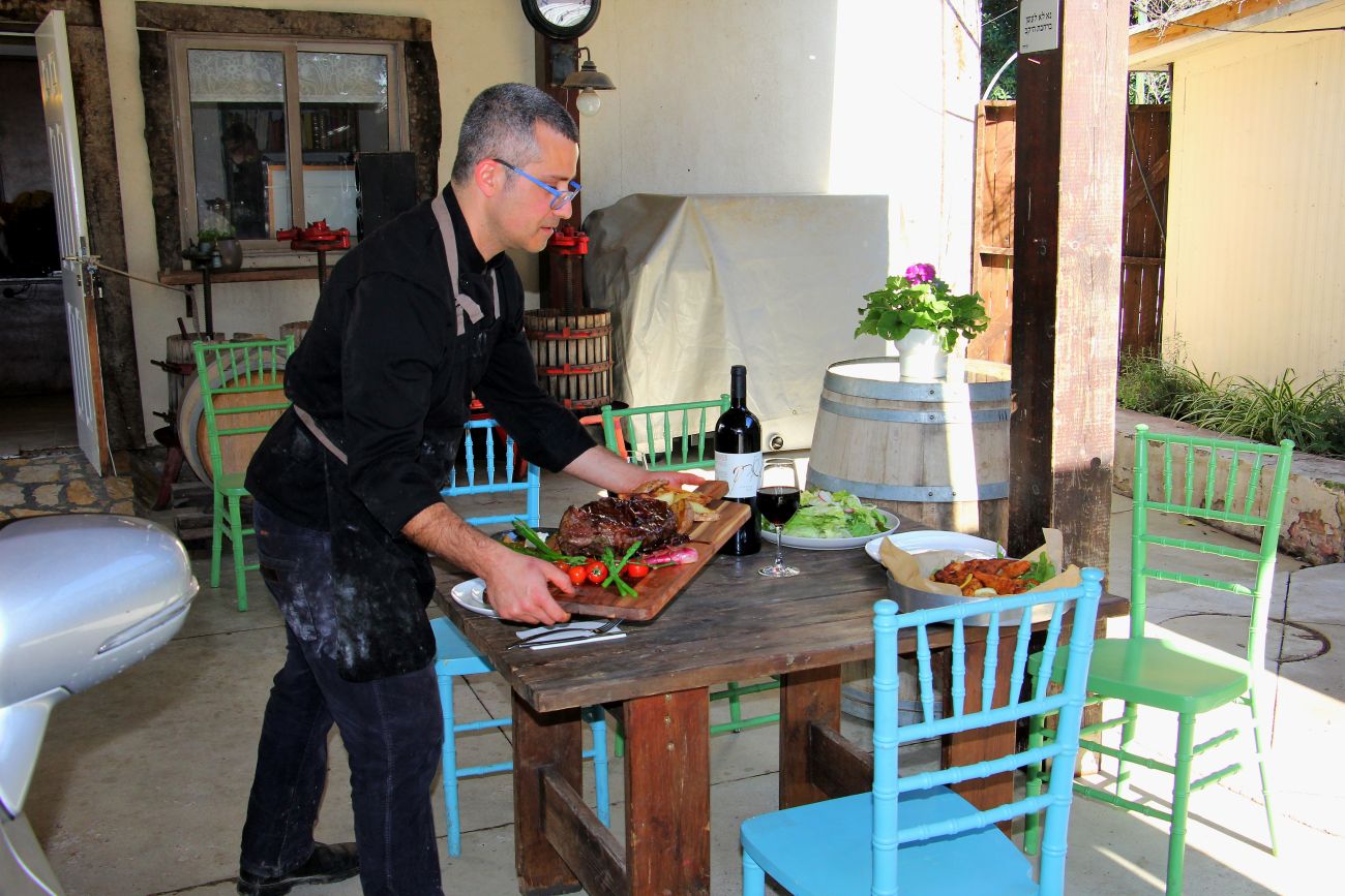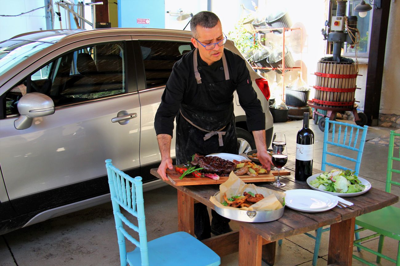 השף ירון מתמחה בבישול במספר סגנונות, אך הסגנון האהוב עליו הוא שילוב בין מטבח ישראלי עדכני למטבח ים תיכוני. אל השולחן הכפרי שהועמד לצידה של סוזוקי קרוסאובר, אותה החנינו בחצר היקב הוגשו ברבוניות טריות שטוגנו במדויק, הוגשו עם לימון וסלט גרגיר ופתחו את התיאבון לקראת הבאות. לאחר מכן הגיעה מנת פסטת חלמונים שהוגשה בשילוב קונפי עגבניות בשילוב אספרגוס שהובילה אל גולת הכותרת של הארוחה, נתח פיקיניה עסיסי שיושן במשך מספר שבועות ונצרב על הפלנצ’ה והוגש עם רוטב יין ופטריות דמי מלא בארומות.